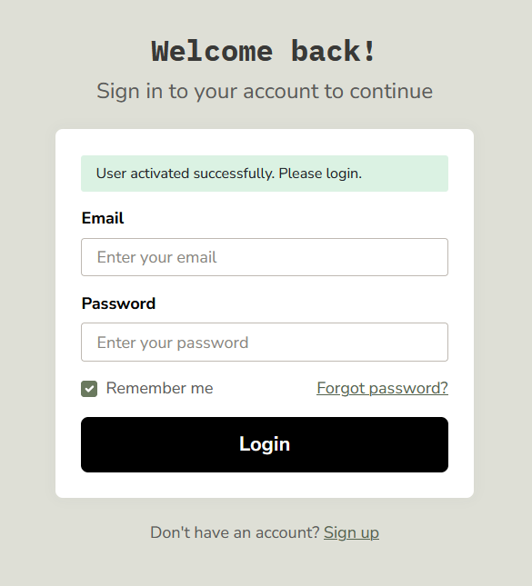 Clicking the link will redirect you to the login screen, where you should enter the credentials you set in the registration form.